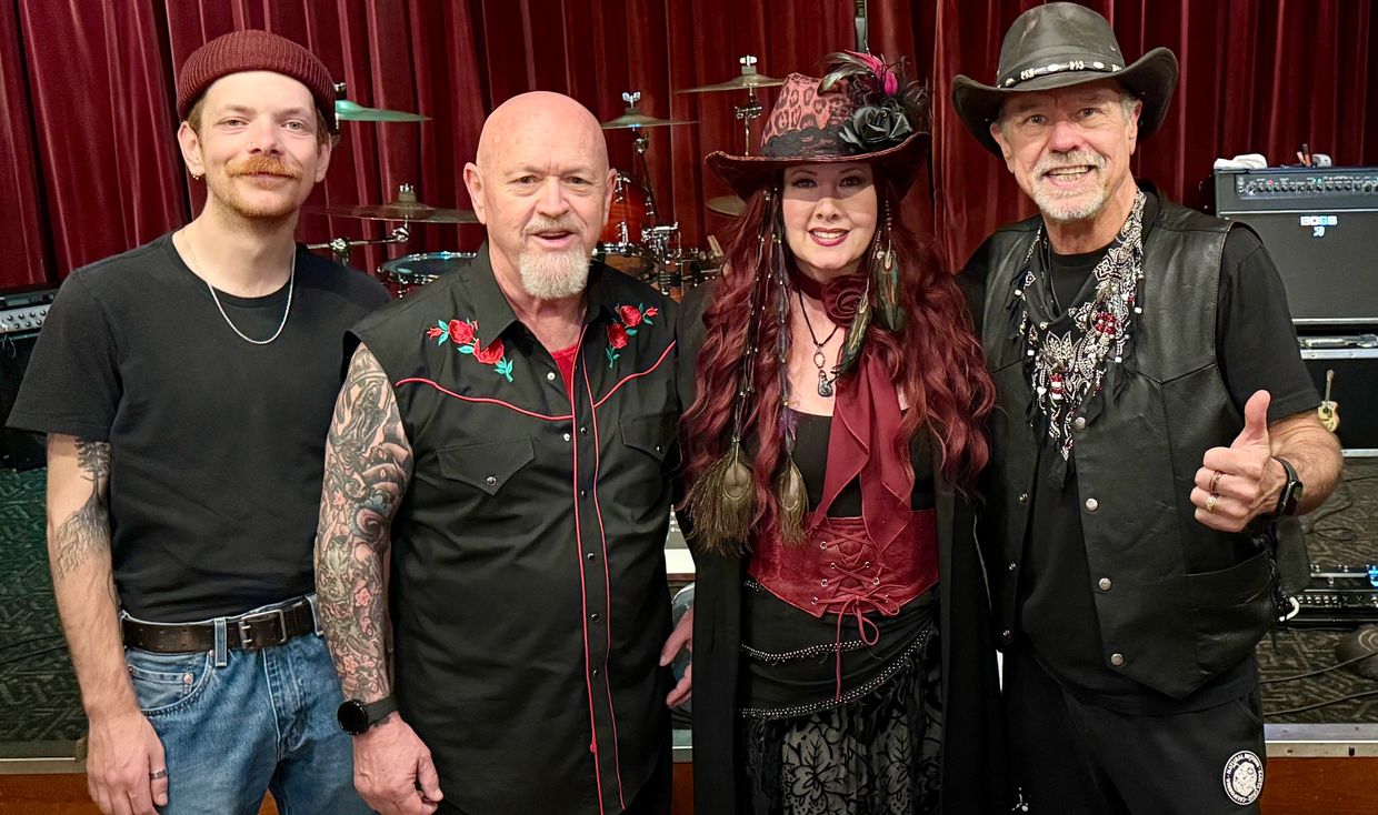 Leslie Heinrichs adds her talented backup vocals, along with carrying the bottom end for the band on bass.